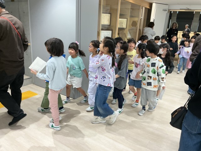 2年生が1年生の手を引いて優しく案内していてとても微笑ましいです。