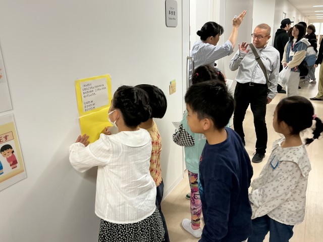 校内に貼られている学校に関するクイズを解きながら、学校内をたんけんします。