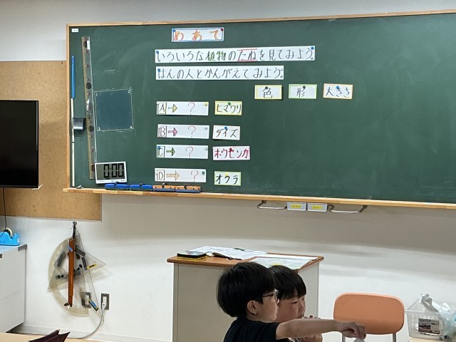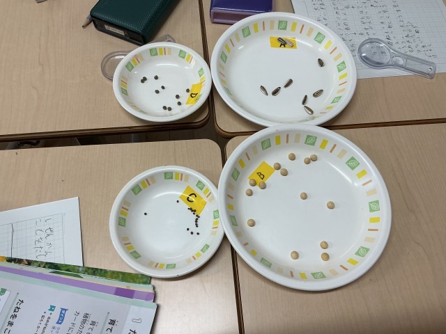 先生が準備してくれた種は、「ひまわり」「ほうせんか」「大豆」「オクラ」です。