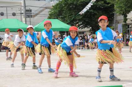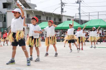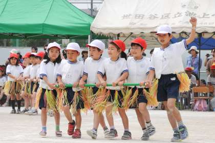 【パラリン おどっちゃおう!】 入学して2カ月、池之上小学校で初めての運動会です。カラフルな衣装を着て、すずをならして元気いっぱいに踊りました。
