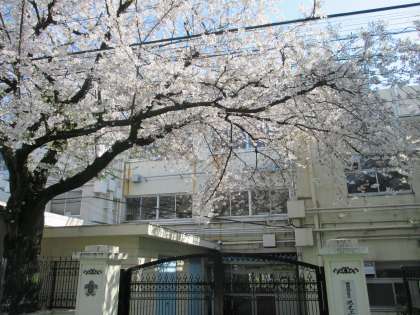 池之上小学校の校庭にも 桜の花びらが舞っています。