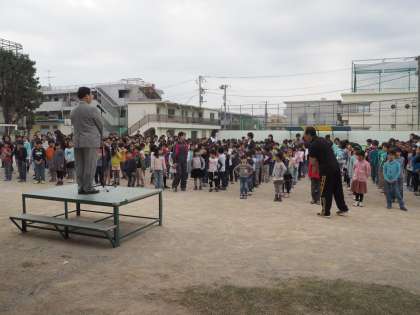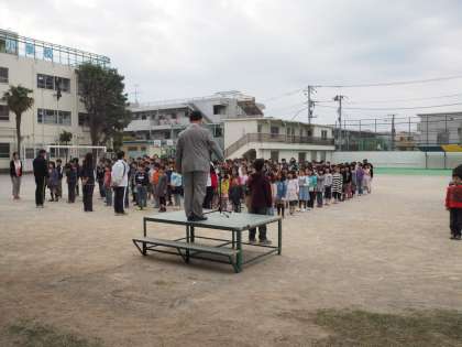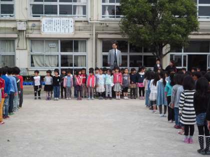 その後 朝会に参加し、 校長先生の話や看護当番の話を聞いてから