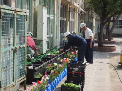 土の整備、苗植え水やりの準備をして下さいました。