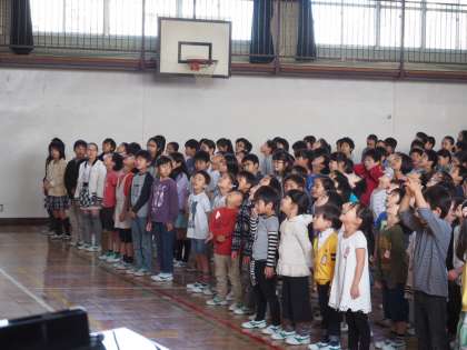 校歌の練習では 一年生も元気な声で歌うことが出来ました。