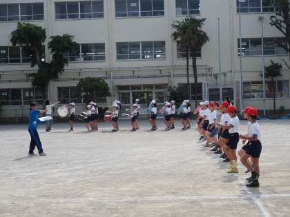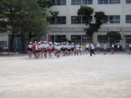 通常の登校時刻より早くから集まって、運動会の練習をしています。