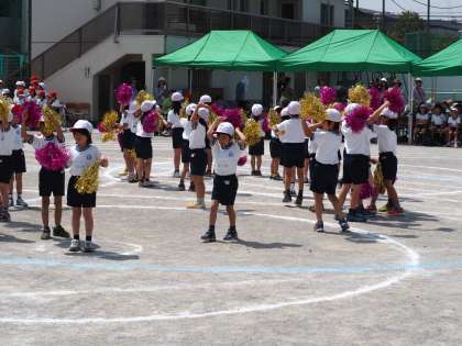 その曲に合わせて元気な一年生が大きな身振りや手ぶりで踊りました。