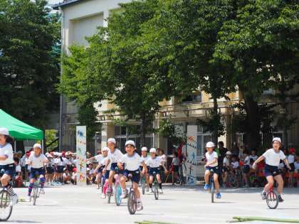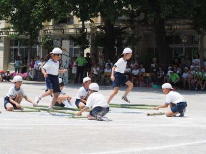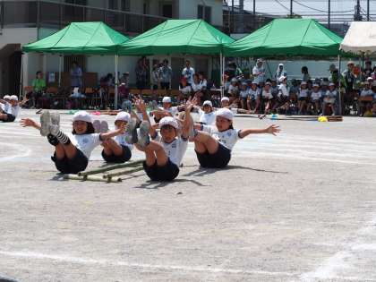 入場は 縄跳び 竹馬 一輪車 で演技をしながら出した。