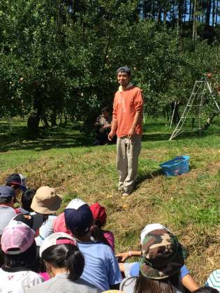 宮田果樹園の宮田さんのお話を聞いて、りんご狩りをしました。