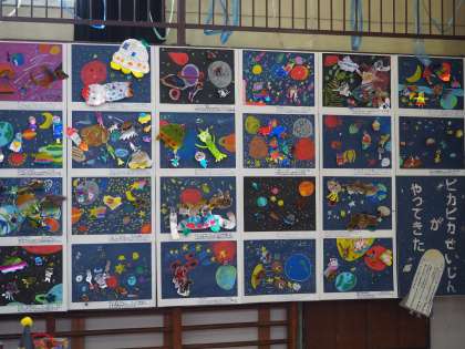 体育館いっぱいに 子どもたちの力作が並んでいます。