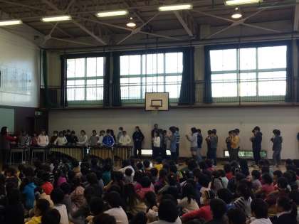 6年生が合奏してくれて、さらに素晴らしい音楽朝会になりました。