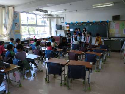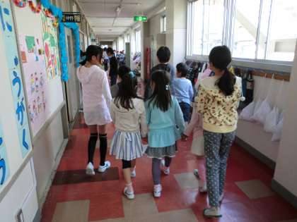 4月16日、今日は「なかよし班あそび」の日です。1年生から6年生までの子供たちが集まる縦割り班活動です。今日は今年度第1回目・・・6年生が1年生を迎えに行き、各班で自己紹介を行いました。