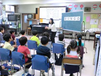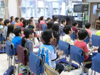 2時間目の音楽の教室をのぞくと、楽しそうに2年生が歌を歌っていました。「BINGO」の歌を手拍子をつけて歌います。リズムよくのびのびと歌っている2年生。その後、校歌を堂々と歌い、鍵盤ハーモニカで「キラキラ星」を練習しました。