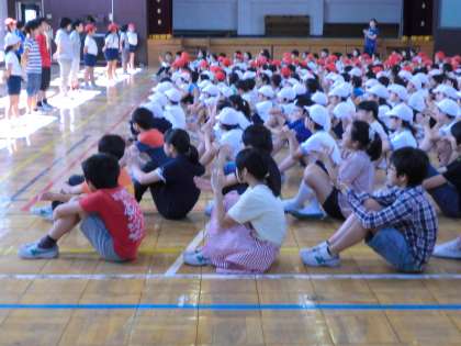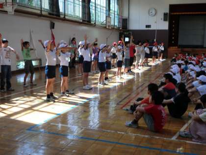 5月14日は、5月の音楽朝会が行われました。今日は、運動会に向けて、応援団の指揮のもと、ゴーゴーゴー(運動会の歌)の練習をしました。毎日練習を重ねている気合の入った応援団が最初にお手本を見せてくれました。力強い歌声です。1番は赤、2番は白、3番は赤白同時に歌を歌い元気さを競います。どの子も精一杯歌っており、運動会本番がとても楽しみになりました。