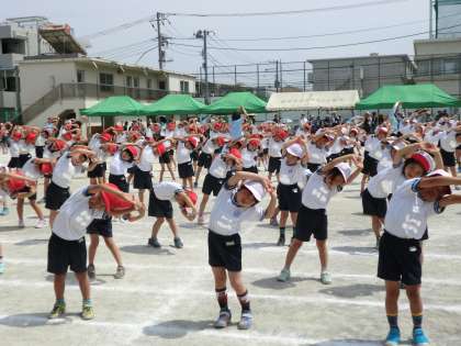 池之上小の子供たちが大活躍した運動会が終わろうとしています。今年は白が優勝しましたが勝利をたたえ、赤組の子供たちも惜しみない拍手をおくる美しい心を見せてくれました。終わりの運動を行い、平成27年度の運動会が幕を閉じました。