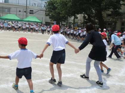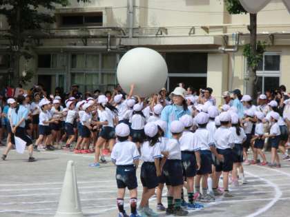 運動会では、全校で取り組む種目があります。大玉送りと池之上音頭です。大玉送りは、1年生から6年生までが力を合わせて大きな玉をできるだけ速く運びます。とても盛り上がる競技の一つです。池之上音頭では、みんなで輪になって楽しく踊ります。今日は、地域の皆様、保護者の皆様もたくさん参加していただきました。ありがとございました。