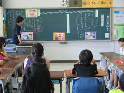 今日は、4年生の道徳の授業の様子をお届けします。「ぼくがうまれた日」とういう資料を用いて道徳の授業を行いました。主人公はドラえもんでおなじみののび太くんです。子供たちが資料に関心を持つことができるようパワーポイントを効果的に活用しました。お話を真剣に聞く子供たち。たくさん意見を言う子供たち。「家族の大切さ」についてたくさんの学びができました。