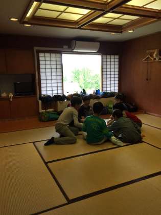 午後2時30分からのカレー作り開始まで、部屋ごとにくつろぎの時間です。靴もしっかりそろえて、さすが池之上小学校の5年生です。