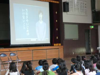 今日から学校公開期間が始まりました。第1日目は、各教科等の公開とともに、各学年でセーフティ教室を開催し、安全について学びました。1・2年生は「連れ去り防止」、3・4年生は「万引き防止」、5.6年生は「薬物乱用防止(危険ドラッグ)」について、北沢警察の皆様からお話いただきました。また、6年生は「ネットリテラシー講座」を開催し、インターネットを安全に使うにあたって、注意することや大切にすることなどを教えていただきました。