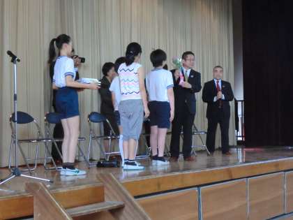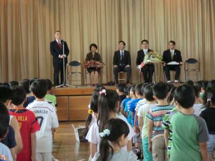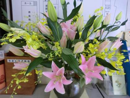 池之上小学校では、毎月1回「花ボランティア」という活動があります。各学級の子供たちが季節感あふれる花を生け、教室に飾ります。毎月、花を届けてくださっているのが「ワンコインクラブ」の皆様です。花に関するお仕事をしている方々が、子供たちの豊かな心の育成のために、きれいで生命力あふれる季節の花を毎月届けてくださるのです。今日は、その皆様がご来校され、花を生けるためのはさみを各学級用に寄贈してくださいました。素敵な花束もいただきました。お花は各学級に、そして学校の玄関に飾らせていただきました。