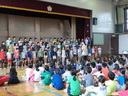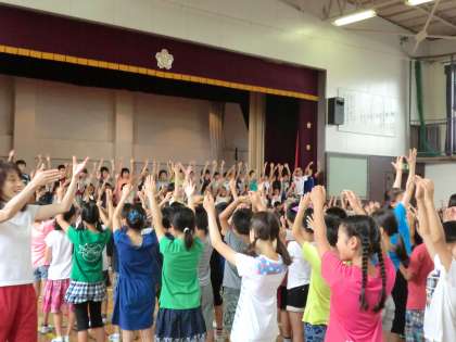 6月25日、音楽朝会が行われました。今日は「WAになっておどろう」を元気に歌いました。最初に3年生の歌声の発表です。たくさんの練習の成果がよく表れていました。膝でリズムをとり、手を大きく動かし、明るい表情でリズムよく歌うことができました。3年生の発表後は、全校の子供たちで歌いました。大きな元気のよい歌声が体育館に響き渡りました。2曲目は「アブラハムの子」です。体全体を使って楽しく歌い踊ることができました。司会進行と演奏を務めた音楽委員会の子供たちもがんばりました。たくさんの保護者の皆様にもご来校いただきました。ありがとうございました。