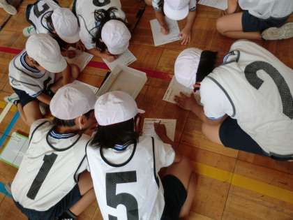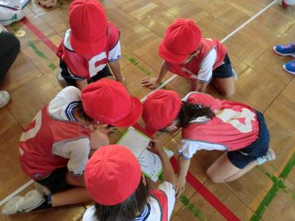 3年生「プレルボール」の学習では、作戦タイムがとても重要な時間となります。フォーメーションを考えたり、声かけを振り返ったりするする姿がありました。ゲーム後はあいさつと振り返りもしっかり行いました。この日は、教員の研究会でもありました。よりよい授業をめざして、協議したり講師の先生からご指導いただいたりしました。