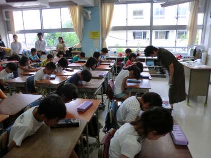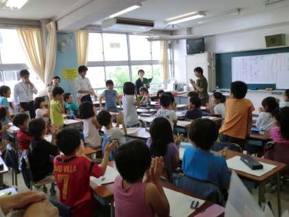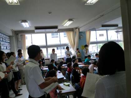 3年生の国語の授業の様子です。しっかりと礼をして授業が始まりました。この日は、自分たちで選んだ詩を楽しく音読する学習です。詩を読みながら、情景を思い浮かべ、音読の仕方を考えていきます。たくさんの意見が出ました。音読の役割分担も考えながら、群読につなげていきました。授業が終わった後の子供たちの顔は満足でいっぱいの様子でした。世田谷区の教員の研修会として授業を公開したため、たくさんの先生方に囲まれた中、よさをいっぱい発揮する姿や友達のがんばりに拍手を送るすてきな姿もありました。