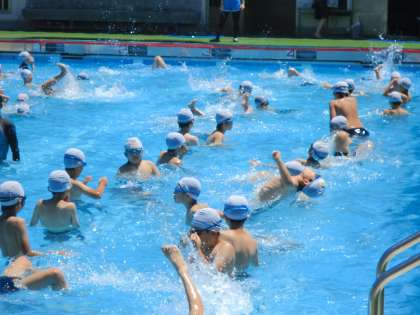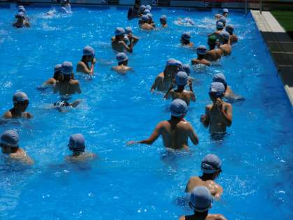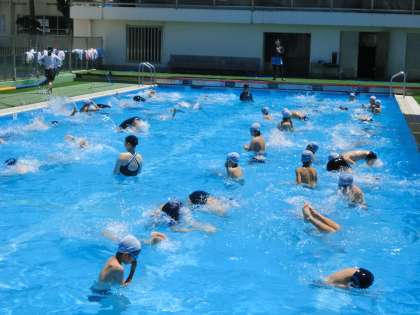 雲ひとつない澄み切った青空。昨日に引き続き、気温もぐんぐん上昇しています。暑さ厳しい中、5・6年生の水泳指導が行われました。先生の話をしっかり聞くというルールを守りながら、子供たちは水の中の運動を楽しみました。ほんとうに気持ちよさそうに泳いだり、もぐったり、浮いたりしていました。