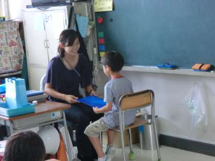 各クラスでは、子供たち一人一人に通知表が渡されました。通知表には、子供たちのがんばりがたくさん詰まっています。そのがんばりを一人一人ていねいに伝えていく担任。得意なことも苦手なことも、がんばったことももう少しがんばりたいことも、子供たち自身もしっかりと1学期の成長を受け止め、夏休みにつなげていってほしいと思います。