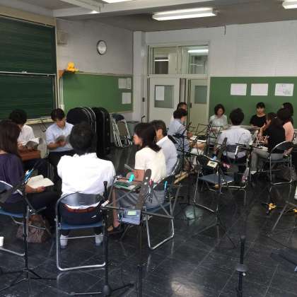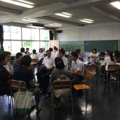 1学期の最終日、子供たちが下校した 午後、富士の学び舎の教員が一堂に会し、研修会が開催されました。富士中学校、代沢小学校、花見堂小学校、多聞小学校、池之上小学校の5校の教員で、よりよい授業づくりについて話し合いました。