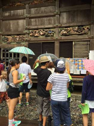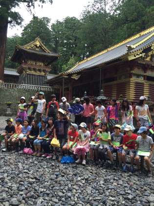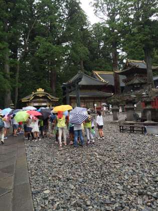 日光東照宮の見学です。雨と混雑で見学が大変ですが、子供たちは事前に調べてきた名所のガイドをしながら世界遺産のすばらしいさを感じています。