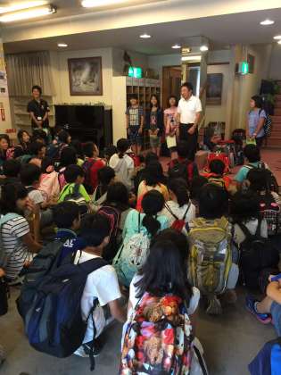 予定より30分ほど早く、宿舎に到着しました。開園式を行い、宿舎の方に「よろしくお願いします」のあいさつをしました。おいしい食事や自慢の温泉のお話を聞くと、子供たちから思わず感嘆の声がもれました。その後、先生から靴をそろえてマナーよくというお話があり、それぞれの部屋に笑顔いっぱいで向かいました。各フロアでは避難経路について丁寧に説明していただきました。今は自由時間を楽しんでいます。