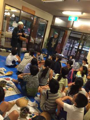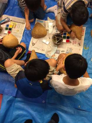 おいしい夕食をいただいた後は、ふくべ細工体験を行いました。ふくべ細工について教えていただいた後に作品作りです。どの子も熱心に取り組んでいます。個性あふれる作品ができました。お礼も片付けもしっかりできて、お褒めの言葉をいただきました。