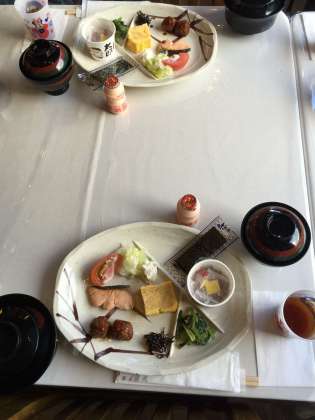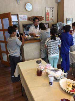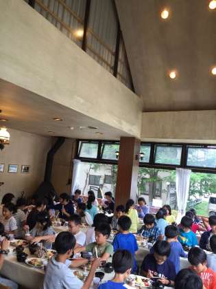 源泉散歩の後は朝食です。今日もおいしくいただきました。片付けもがんばりました。