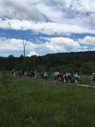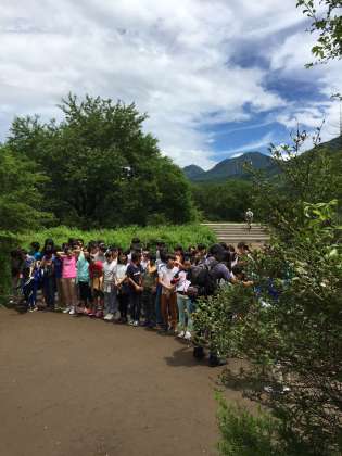 ハイキングも終盤。男体山もきれいに見ることができました。赤沼で学年集合写真を撮り、思い出作りを。みんなすてきないい笑顔です。