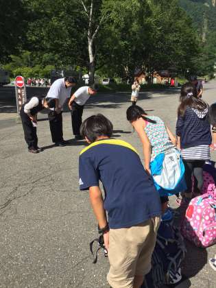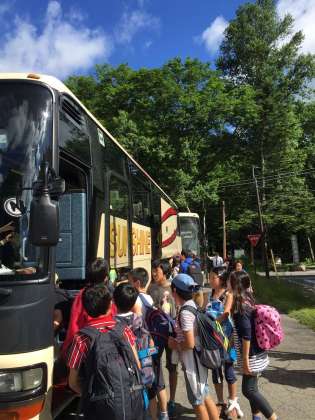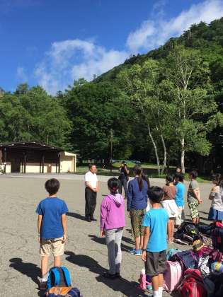お世話になった「パークロッジ深山」とお別れです。おいしいお食事、自然の恵みを受けた温泉、整理されたお部屋、きもだめし大会へのご協力、ふくべ体験など、宿舎の皆様にはほんとうにお世話になりました。日光の思い出が心あたたまるものになりました。ありがとうございました。