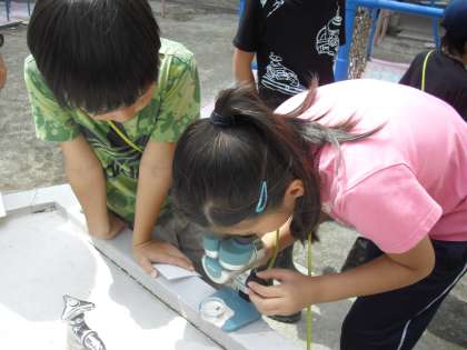 3年生は、池之上小学校にある二つのビオトープについて、1年を通して継続的に学んでいきます。そして自分たちの力でビオトープを管理していきます。特に二つのビオトープの環境の違いに目を向け、トンボの生息地を守っていく実践を行っています。明るい場所が好きなトンボ、水草が好きなトンボ、開けた場所が好きなトンボ・・・など、トンボによって生息しやすい環境の違いを理解し、ビオトープにやってくるトンボを見分けていきます。この学習では環境について詳しく教えてくださるゲストティーチャーの皆様にお世話になっています。教えていただいたことをどんどん吸収する子供たち。子供たちの知識の吸収力の大きさに驚かされました。今日は、ヤゴの観察も行いました。真剣な姿をご覧ください。