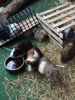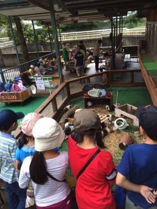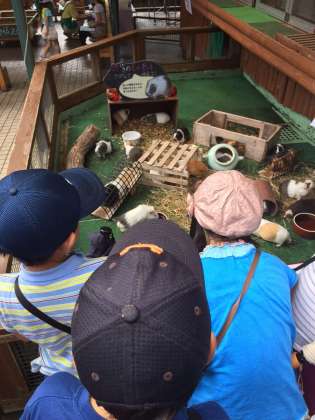 モルモットを見学する子供たち。
