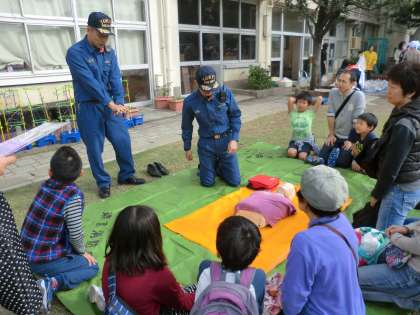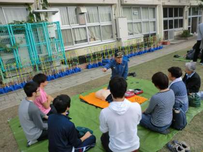 世田谷消防署の皆様からAEDの使い方を教えていただきました。また、起震車で震度7までの揺れを体験しました。頭を守ることの大切さを改めて学びました。
