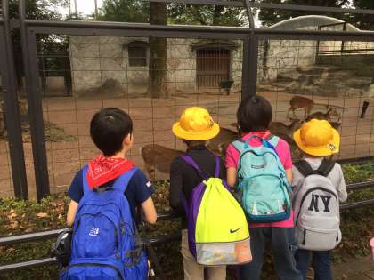 ヤクシカを見学する子供たちです。「角が生えているシカの後にみんなが仲良くついていってるみたいだね。」そんなすてきな発見をする子供たち。動物の不思議さをたくさん発見しています。
