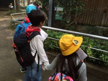 どのグループもとても仲良く行動しています。2年生は、1年生のお世話を忘れません。