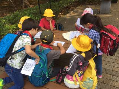 さすが池之上の子供たちです。約束の12時を目指して集合します。早くついたグループは、お昼の後にどこへ行こうか計画を立てたり、お腹すいたねと言いながらお弁当の話題で盛り上がったりしていました。5分前には全てのグループが到着しました。