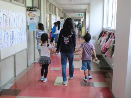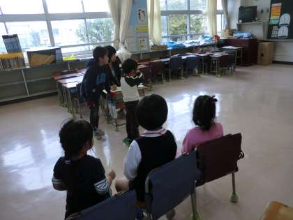 10月29日、池之上小学校を会場に就学時健康診断が行われました。これから小学校に入学する幼稚園・保育園などに通うかわいいお子様とその保護者の皆様にご来校いただきました。この日はすべての教職員が健康診断に対応しましたが、何といっても大きな力となったのが、5年生の子供たちです。少し緊張した面持ちでしたが、「こんにちは。一緒に目の検査に行こうね。」「少し混雑しているからここに座って待っててね。」「一緒に行くから大丈夫だよ。」とまだ小さな園児たちの目線に立って話しかけたり、手をさしのべたりしていました。やさしく思いやりのある態度で、一生懸命に行動することできました。