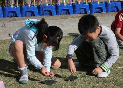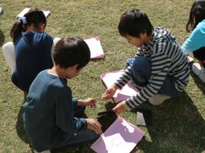 3年生が理科の時間に、太陽の光を集める実験を行っていました。一人一人が真剣に虫眼鏡と黒い紙に集中していました。黒い紙から煙が上がり、小さな穴が開くと「光を小さく集めると、穴があくよ。」「レンズを動かさないで集中するといいよ。」など、実験を通しての気づきをたくさんつぶやいていました。また、「大きな地震が起きてガスや電気が使えなくなった時に、火を起こすことができるかもしれないね。」と学習したことを生活に生かして考える子もいて感心しました。