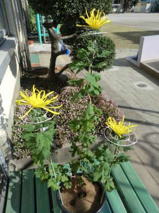 花を生ける日にすてきなお花を届けてくださる花ボランティアの方から3本仕立ての菊をお借りしました。校長室前にきれいな菊のお花を置かせていただいています。秋の季節を花を通して感じることができることはとても幸せです。