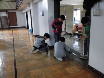 11月16日、6時間目を使って5・6年生が学芸会の会場準備を行いました。重たいマットを協力して運んだり、椅子をていねいに並べたり、細かいところまで掃き掃除をしたりと、みんな一生懸命に働きました。進んで活動する子がたくさんいて、会場準備も素早くできました。体育館にパイプいすが並べられると、学芸会への気持ちが一層高まります。自分のセリフを言いながら拭き掃除をしている子もいました。子供たちの気持ちが学芸会に向かって高まっています。
