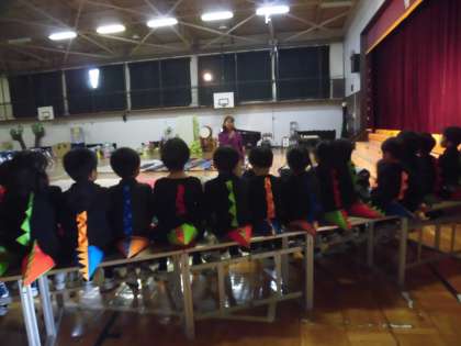学芸会本番が迫ってきました。どの学年も最終段階の練習を行っています。今日の1年生は、劇のセリフや歌、動作の練習だけでなく、場面ごとに変わるひな壇の座る位置、児童鑑賞日と保護者鑑賞日の退場の仕方など、細かい動きを確認していました。みんな熱心に先生の話を聞き、本番で力を発揮できるようがんばっていました。とっても立派な態度の1年生。最後に先生と今日の振り返りを行いました。「やる気・元気・本気・勇気」をもって劇の練習に臨めた子がたくさんいました。すてきな劇が完成しつつあります。かわいくて元気で豊かな表現いっぱいの劇をどうぞ楽しみにしてください。