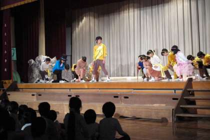 6年生が最後の舞台を演じ切りました。練習の成果を出し切って・・・今までのどの演技よりもすばらしい劇になるように、自分の力の限りを出し切りました。ほんとうによく頑張りました。ライオンキングの世界を創り上げました。6年生の皆さん、すばらしい劇をありがとう。