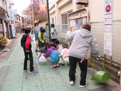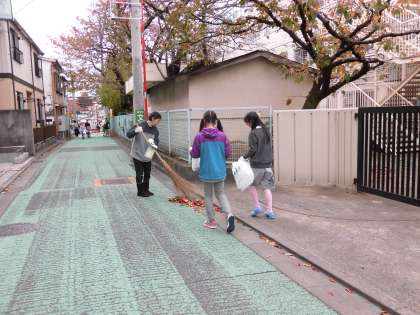 11月25日「富士の学び舎 クリーン作戦」を行いました。池之上小学校では、5年生がこのクリーン作戦に参加しました。クリーン作戦のねらいは「地域の皆様との交流」と「私たちが暮らす地域をきれいにするための活動」です。南門から東方向サザエさん壁画まで・西門前商店街の一部、正門前から東方向踏切までの3か所をきれいにしました。地域の皆様、保護者の皆様にもご参加いただき、子供たちは、一生懸命に落ち葉を拾ったりゴミを見つけたりしました。どんなことにも一生懸命に取り組める子たちばかりです。学校では、なかよし班による落ち葉掃きが行われました。校庭にも「もくもく働く子」がたくさんいました。