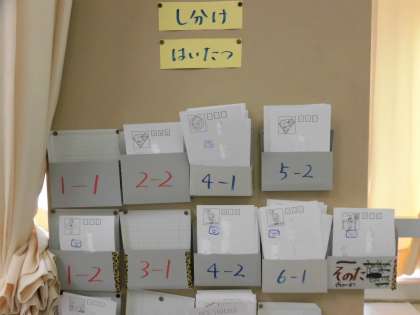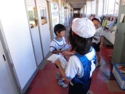 池之上小学校では、今、「子ども郵便局」が開設されています。「子ども郵便局」で様々な仕事をしているのは2年生の子供たちです。2年生は、本物の郵便局を見学に行き、「仕分け」や「消印押し」「配達」などの活動を取り入れました。友達や先生への手紙、給食室や主事室・事務室への感謝の手紙・・・あたたかな言葉のやり取りが行われています。先日の学芸会の日には、保護者の皆様や地域の皆様からも子供たちに励ましや称賛のお手紙をたくさんいただきました。今、はりきって皆様からのお手紙を届けています。