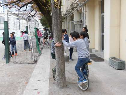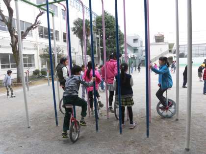 12月2日、今日は曇り空で太陽は姿を見せてくれません。空気の冷たさから冬の到来を感じます。それでも、20分休みの子供たちはとても元気です。校庭には、笑顔いっぱい、元気いっぱいの子供たちが集まってきました。ボール遊び、鬼ごっこ、一輪車の練習と、子供たちは思いきり体を動かし、友達とかかわり合っています。ながなわ大会後は体力づくりのために、短縄に挑戦していきますが、なわとびの練習をしている子もたくさんいました。「休み時間はたのしいな。」そんな子供たちの声があちらこちらから聞こえてきます。